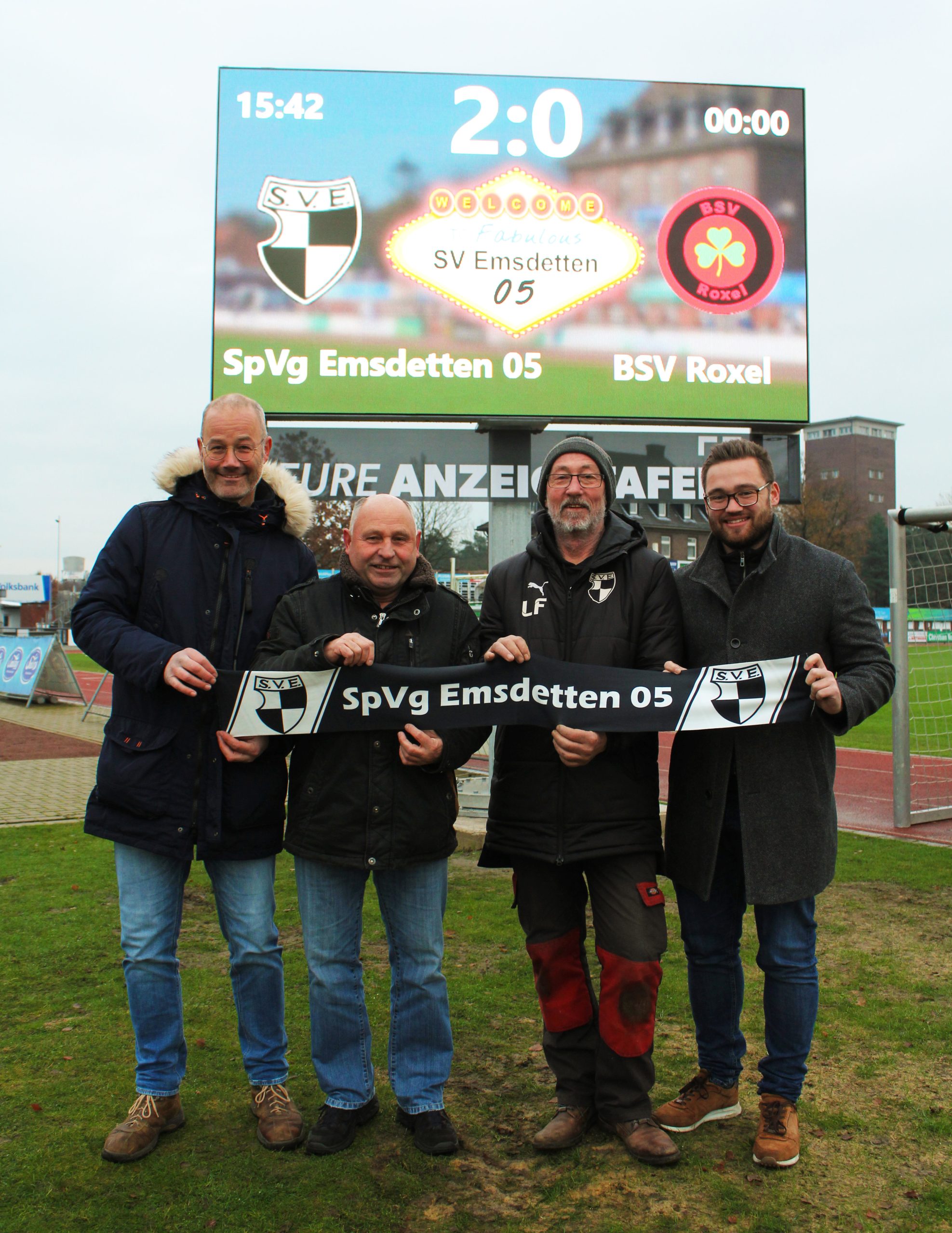 Einzigartig im Münsterland und im Bundesgebiet bislang eine absolute Seltenheit. Dies trifft auf die neue drehbare LED Anzeigetafel im Salvus-Stadion von Emsdetten 05 zu.